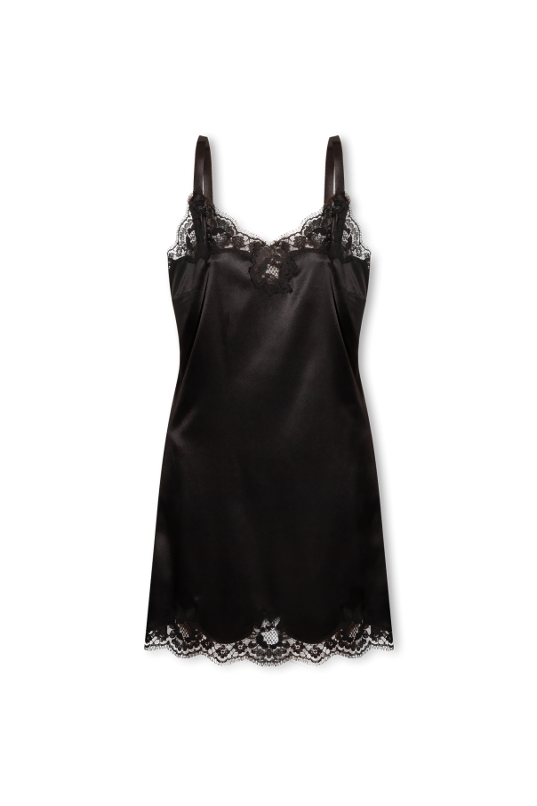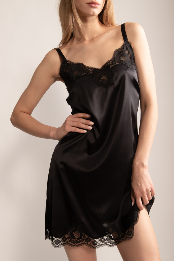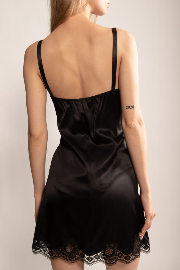 Dolce & Gabbana 黑色系带睡衣。由丝绸制成。饰有蕾丝。