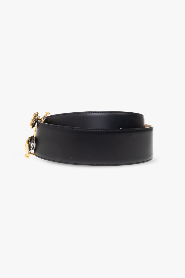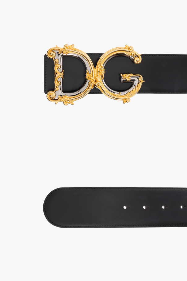 Dolce & Gabbana 的黑腰带。由小牛皮材质制成,附金色和银色金属徽标搭扣。