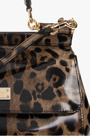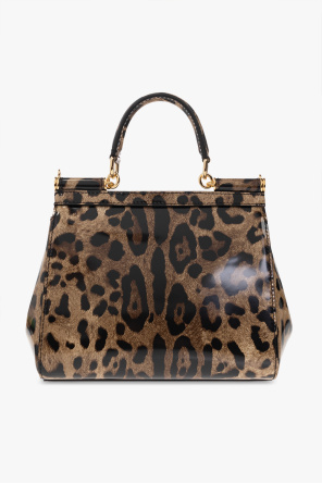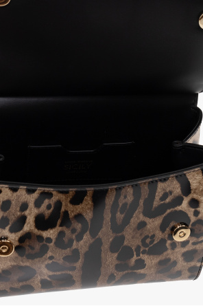 Brown, beige and black ‘Sicily Small’ from Dolce & Gabbana x Kim. Crafted from calf leather decorated with an animal motif, this design fastens with snaps and features a logo-engraved metal application on the front, a half-round handle, a detachable and adjustable shoulder strap, gold-tone metal elements and one internal compartment with one slip pocket and one card slot.