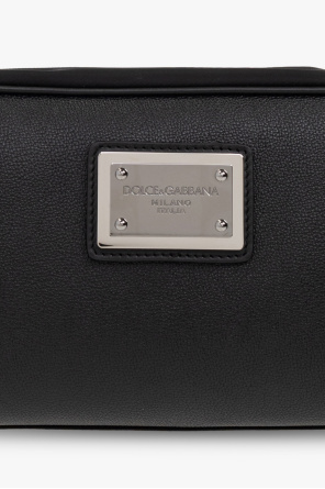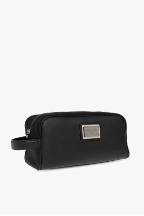 Black wash bag from Dolce & Gabbana. Emblazoned with a logo application, this design features a zip fastening, a half-round handle and one internal compartment with a zip pocket.