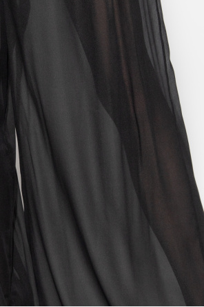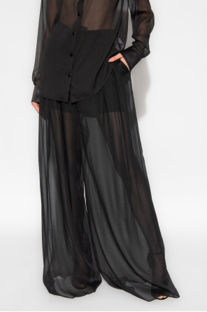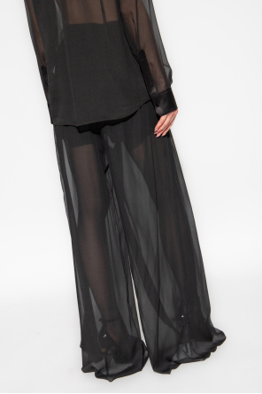 Black trousers with darts from Dolce & Gabbana. Made of silk with a see-through finish, this pair falls with wide legs and features a zip fly with a button and two slant pockets.