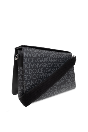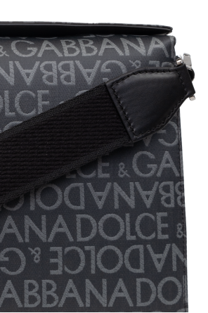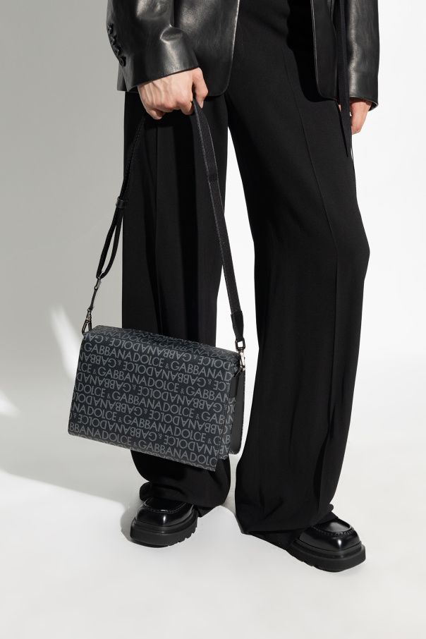 Grey and black shoulder bag from Dolce & Gabbana. Made of monogram canvas with leather trims, this design features a magnetic closure, detachable and adjustable shoulder strap, silver-tone metal hardware and three separate internal compartments with one zip pocket and one slip pocket.