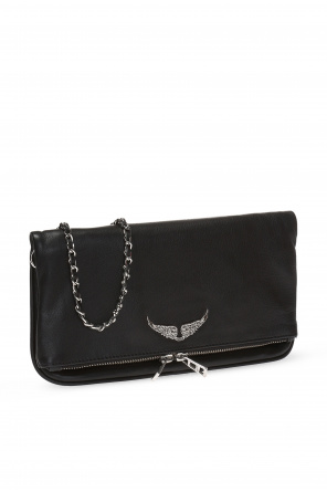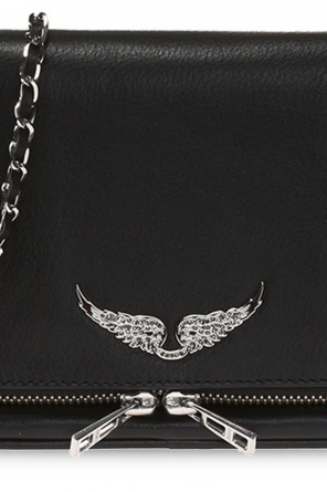 Zadig & Voltaire的黑色Rock单肩包,采用纹理牛皮制成,磁扣开合,饰以白色饰顶镶嵌的翅膀贴饰。两个拉链外袋。可拆卸链式和皮质双肩带。黑色内衬。内有一个主要分层。银色金属配件。