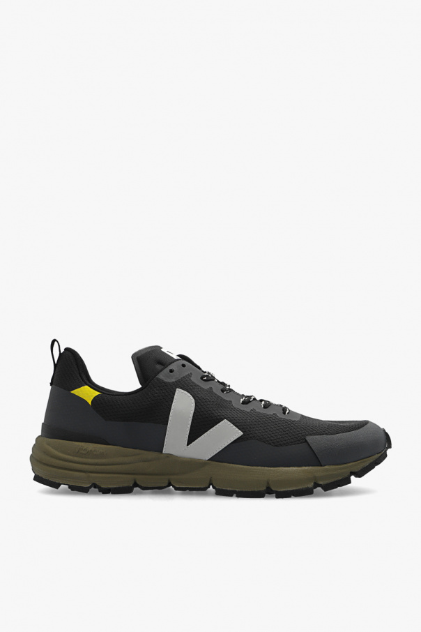 Black 'Dekkan' sneakers from Veja. Crafted with Alveomesh (100% recycled polyester), this lace-up model showcases the brand's signature grey V logo patch in rubber and rice waste. The sole blends ecological materials and Vibram’s technology. Vibram is the world leader in technical soles made for hiking and trekking. The organic-sourced and recycled insole consists of sugar cane, Amazon rubber, organic cotton and recycled EVA. It is set on a green rubber sole made from organic and recycled materials.