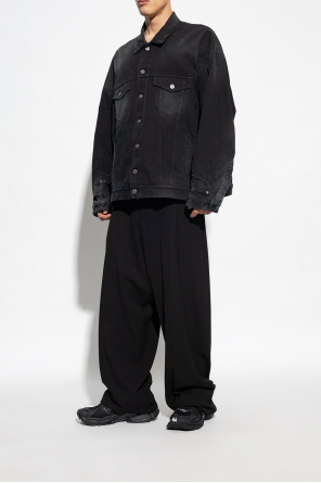 Balenciaga的黑色Runner运动鞋,系带设计。采用网眼布和橡胶制成。饰有白色刺绣和印花的标志,以及鞋码印花。后部设有拉片。毛边饰边与磨损效果。黑色橡胶外底。