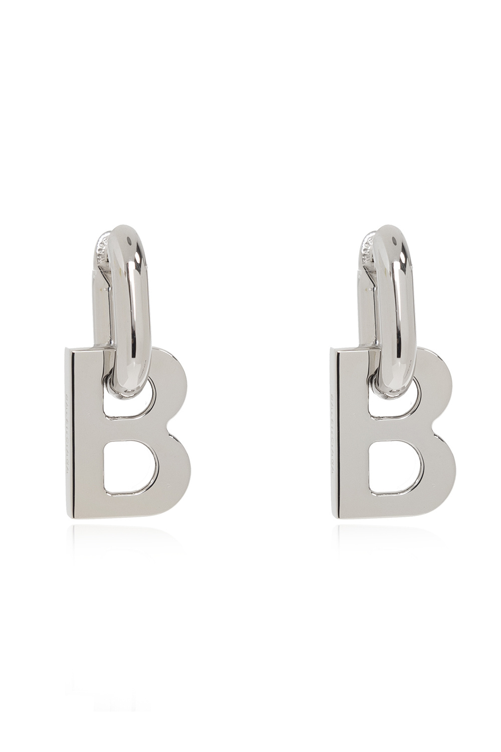 Silver-tone earrings with logo charms and clasp fastenings from Balenciaga. Made of brass.