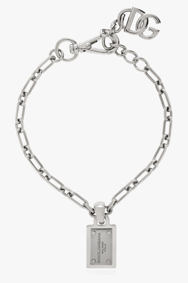Silver-tone bracelet from Dolce & Gabbana. Made of brass, this item features logo charms and adjustable lobster clasp closure.