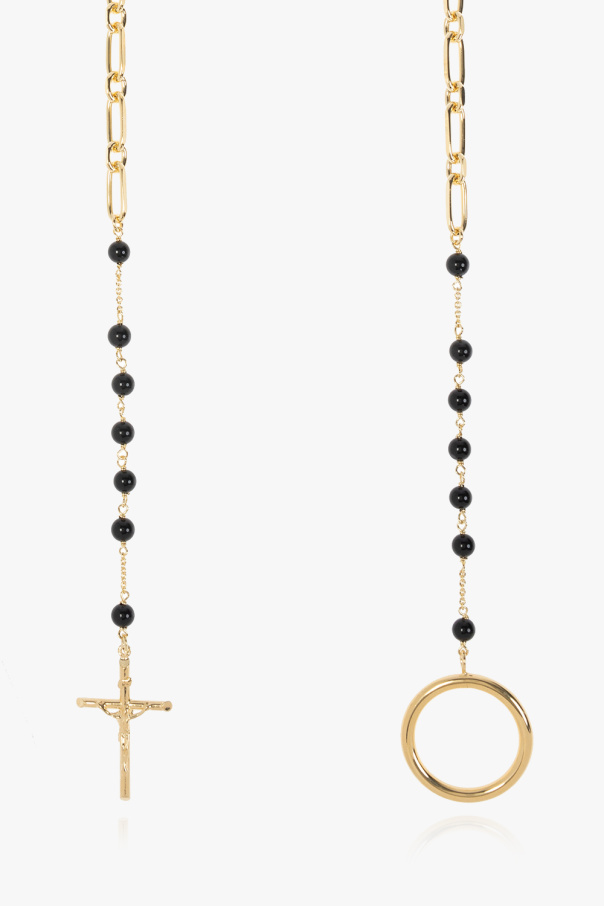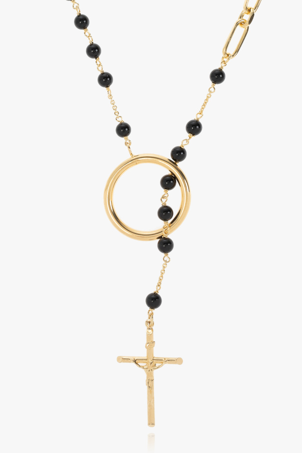 Gold-tone rosary necklace from Dolce & Gabbana featuring a religious motif and black onyx beads.