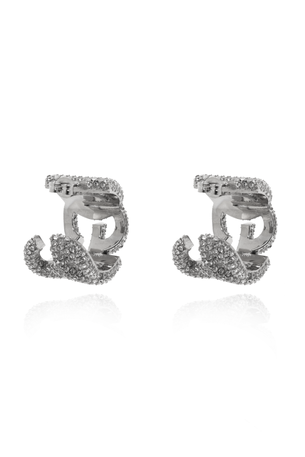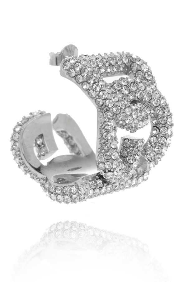 Silver-tone earrings from Dolce & Gabbana. Made of brass, they secure with push back closures and showcase glossy glass crystals in the shape of a logo.