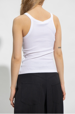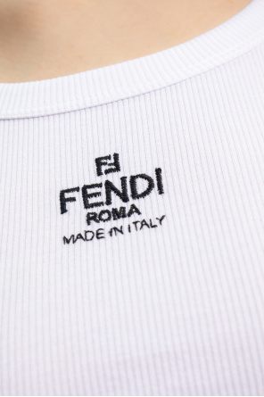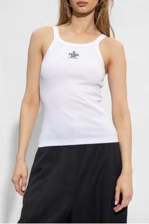 White tank top from Fendi. Crafted from ribbed cotton, this style features an embroidered black logo on the front.