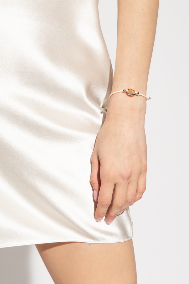 Tory Burch 金色和奶油色'Miller'可调节手链。由皮革和黄铜材质制成。饰有徽标坠饰。