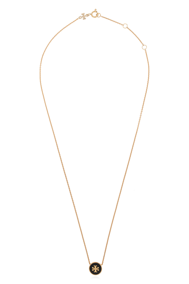 Gold-tone ‘Kira’ necklace from Tory Burch. Made of brass, this item features a lobster clasp fastening and an enamelled ‘Double T’ pendant.