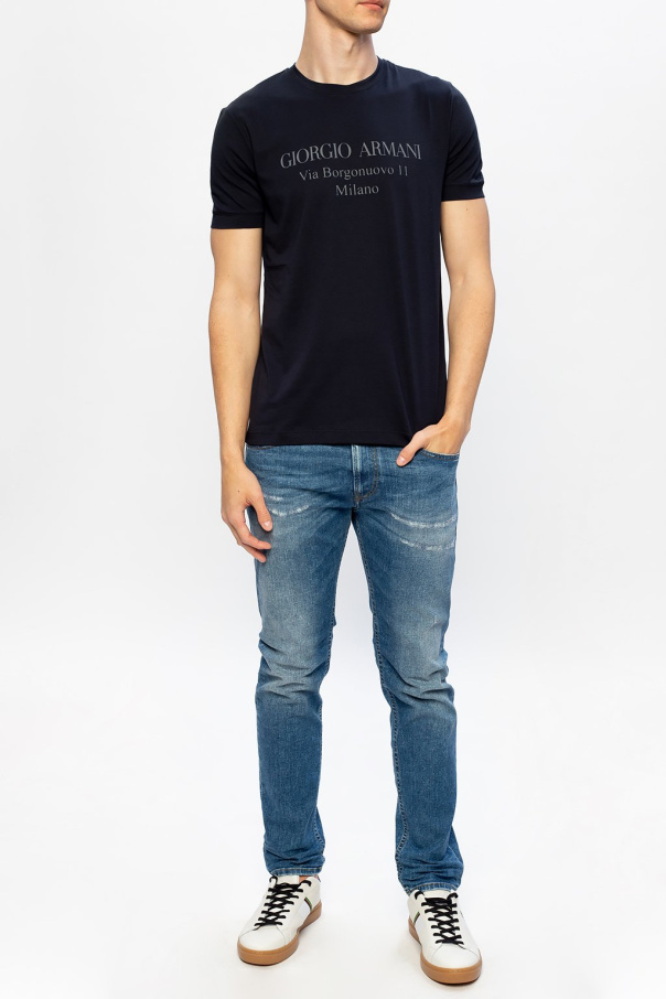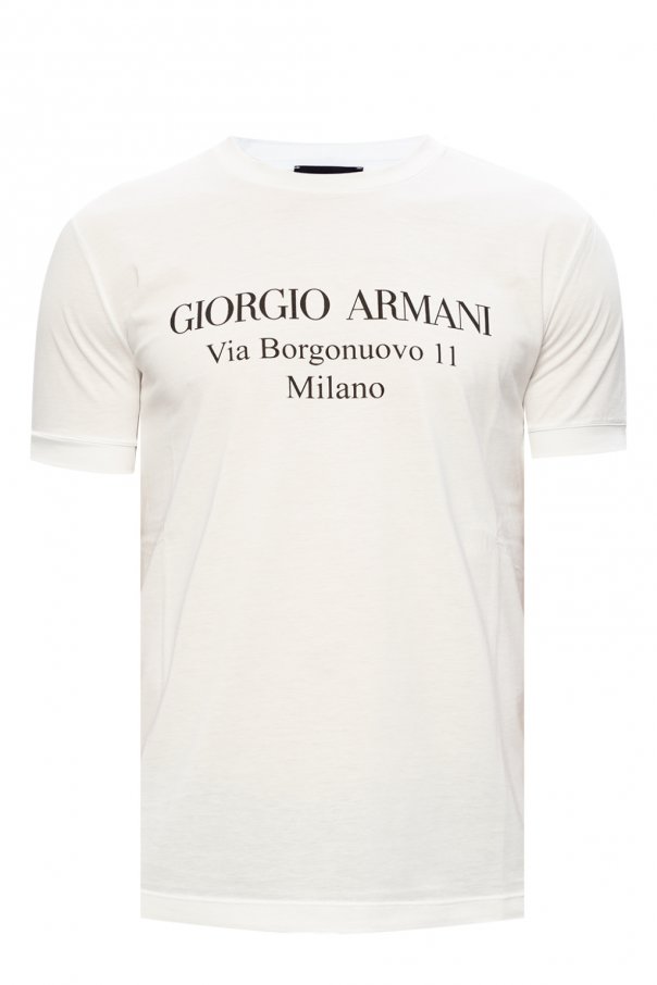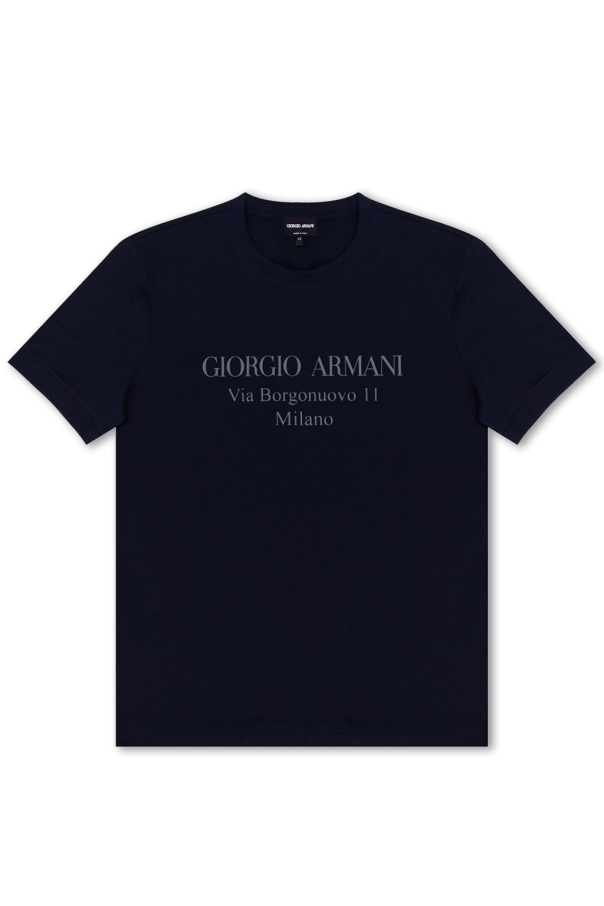 Giorgio Armani的黑色圆领T恤。棉质材料制成。正面附灰色logo图案。