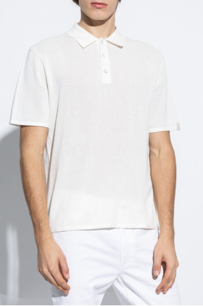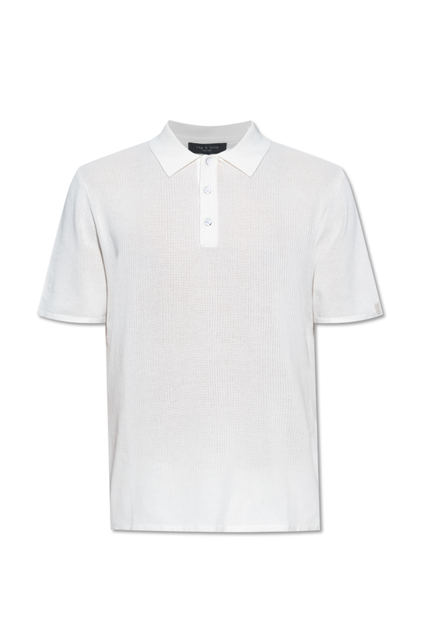 Rag & Bone的白色Harvey宽松款Polo衫。采用棉混纺面料制成。纽扣领口。短袖和下摆设有松紧饰边。