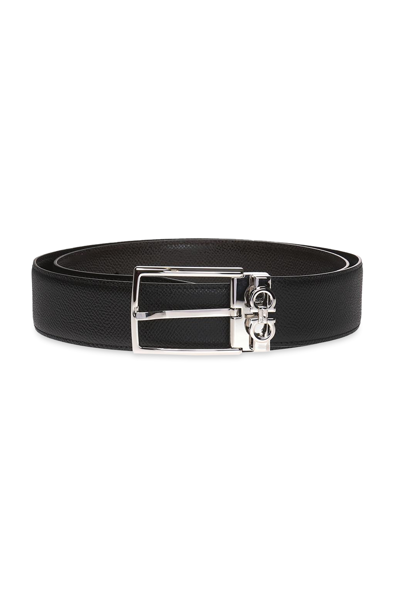 这款黑色双面可调皮带来自Salvatore Ferragamo,以粒面小牛皮制成,配有可拆卸标识形搭扣。银色五金配件。