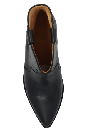 Isabel Marant的Dewina黑色高跟弹力靴。采用皮革制作。侧面配有两个拉手。尖头设计。棕色皮革鞋底。