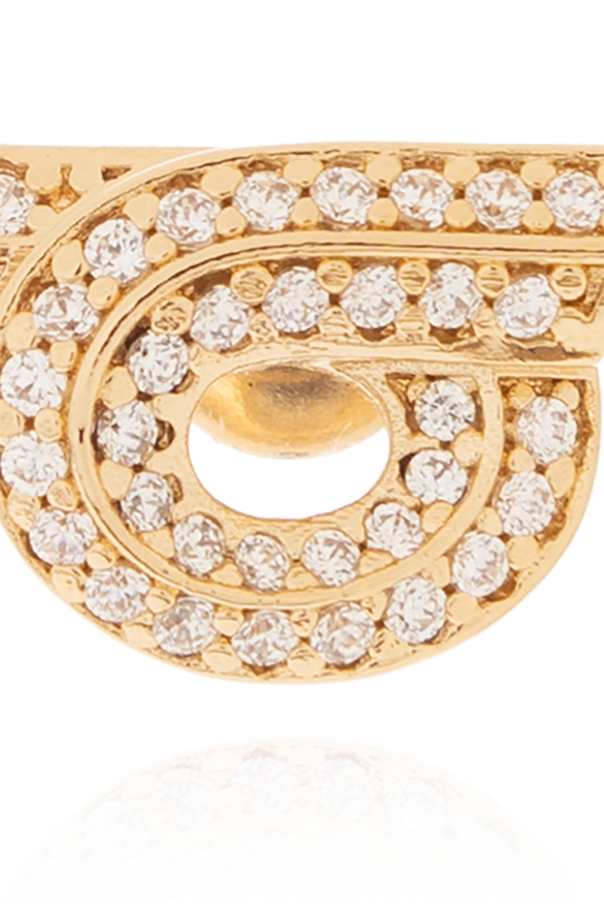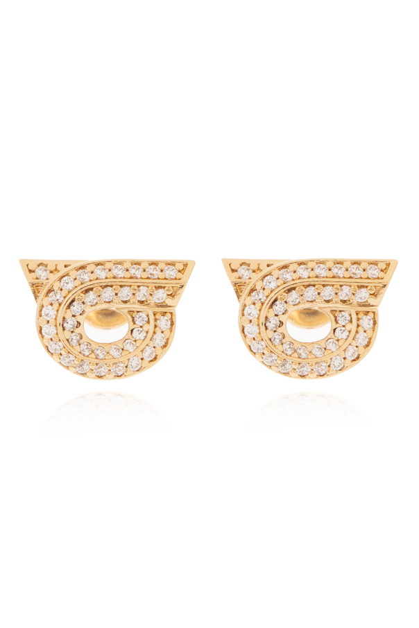 FERRAGAMO金色黄铜耳环。饰有玻璃镶嵌标志贴花。耳钉设计。