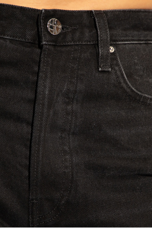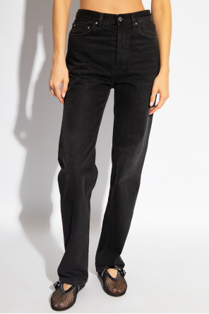 Toteme的黑色直筒牛仔裤。纽扣开合。后面饰有标志贴花。五个插袋。长直筒裤腿。