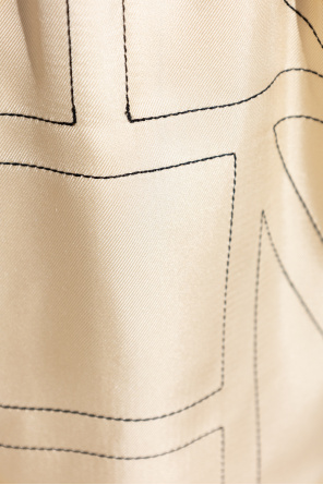 Beige pyjama shorts from Toteme. Made of silk, this short leg design features an elastic waistband and embroidered monogram pattern in black.