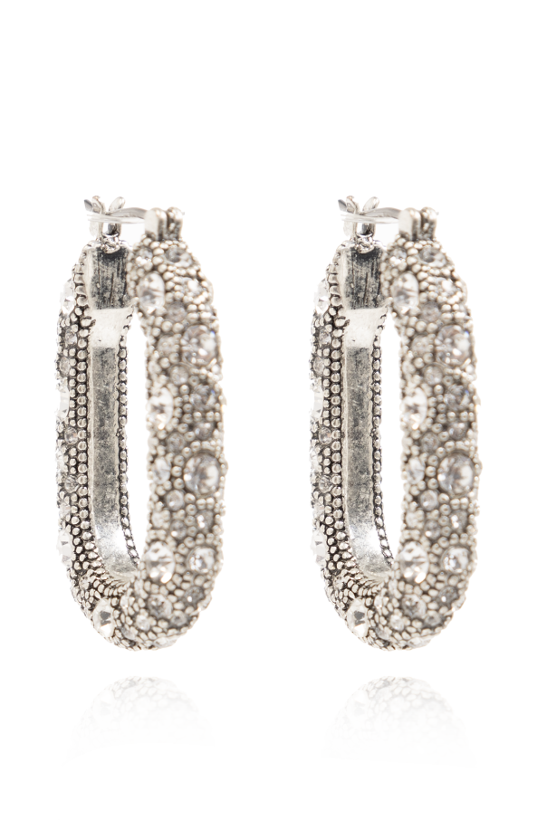 AllSaints银色黄铜耳环,饰有亮面玻璃饰片和锆石。按扣开合。