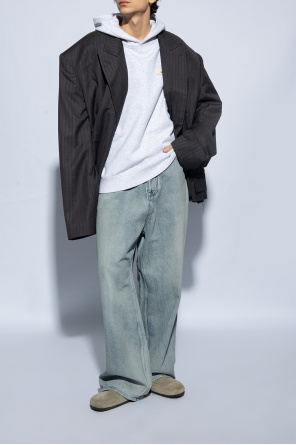 Birkenstock的米灰色Boston BS拖鞋。采用绒面皮制成。正面配有带扣调节带。侧面有压花标志。标准宽度的经过解剖学设计的软木乳胶鞋垫。棕色EVA泡沫外底。