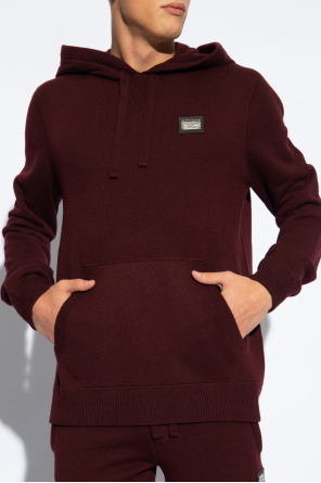 Dolce & Gabbana的酒红色毛衣。采用纯羊毛和少量羊绒混纺面料制成。抽绳兜帽。饰有标志贴花。正面设有插袋。长袖和下摆松紧饰边。
