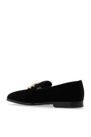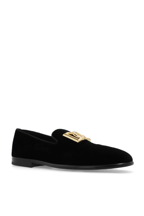 Dolce & Gabbana的黑色绒面乐福鞋。前部饰有金色标志贴花。绒面饰边。黑色皮革鞋底。