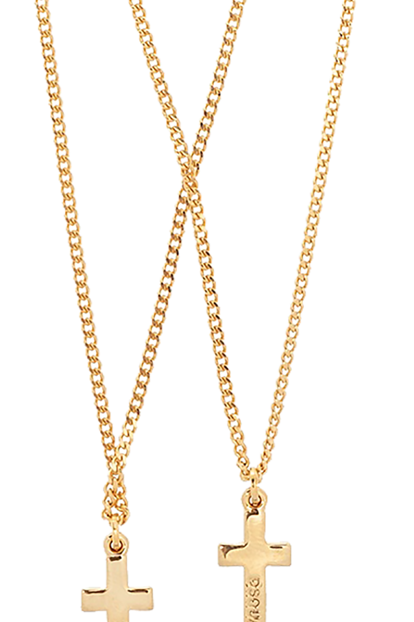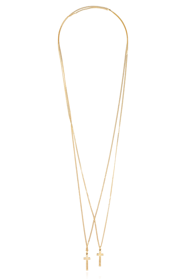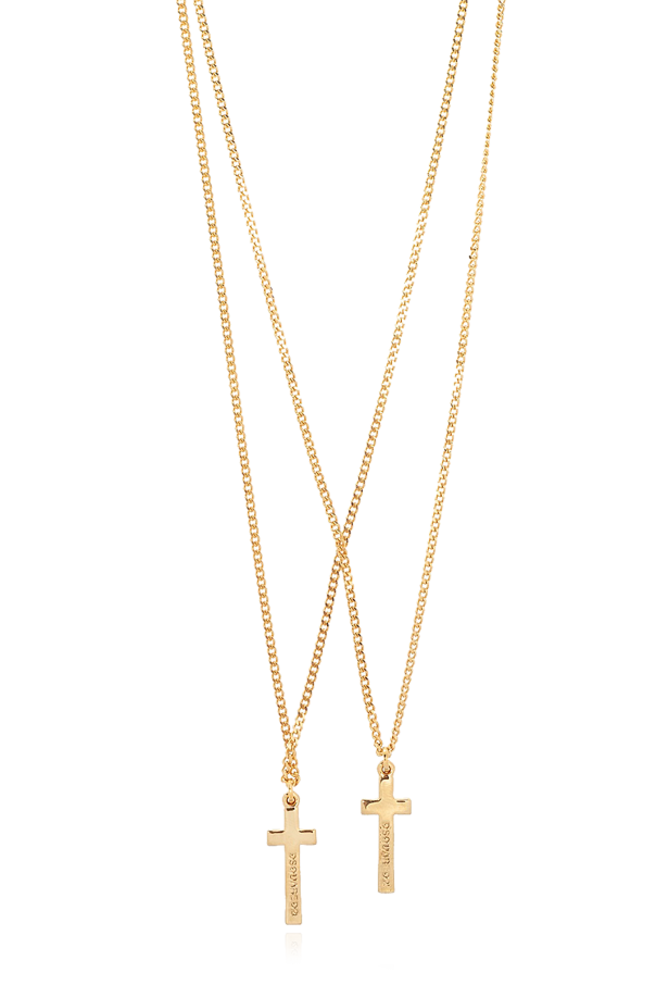 Dsquared2的金色黄铜双项链,饰以logo压花吊饰。