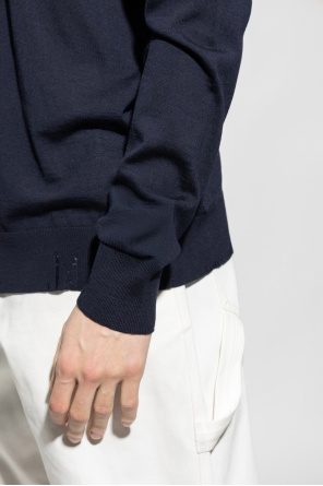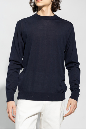 Golden Goose的海军蓝色圆领羊毛质毛衣。附标志贴片。罗纹衣领、下摆和袖口。