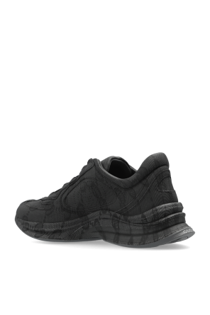 Dark grey ‘Gucci Run’ sneakers from Gucci. Made from monogrammed calf leather, this lace-up model sits on a dark grey rubber sole and showcases the brand's logo on the tongue and back.