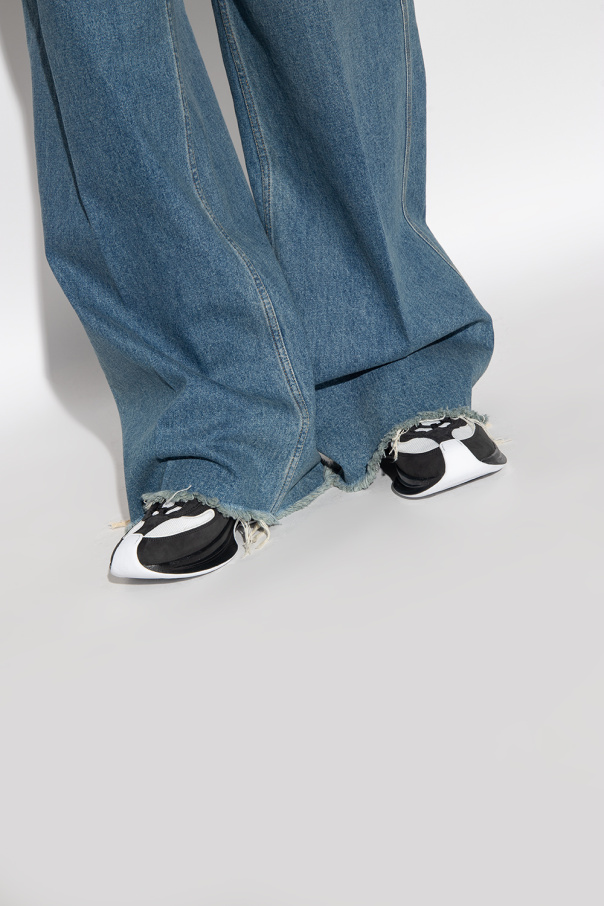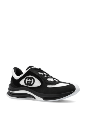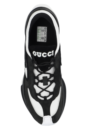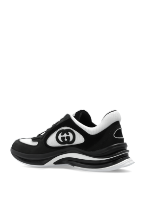 Gucci的白黑色运动鞋,系带设计。采用皮革和面料制成。饰有穿孔细节和刺绣标志。白黑色橡胶外底。