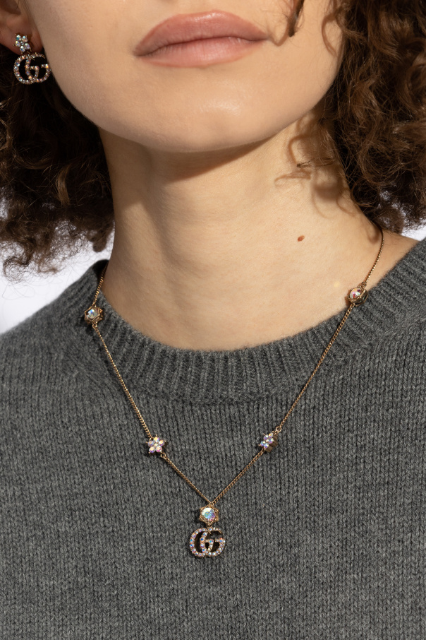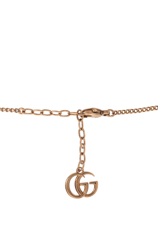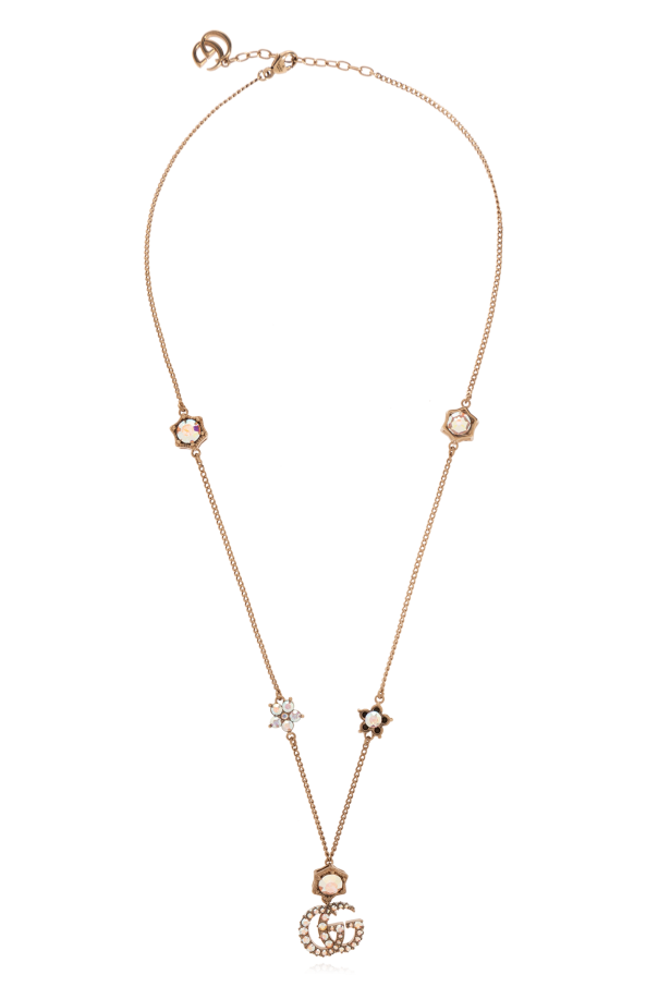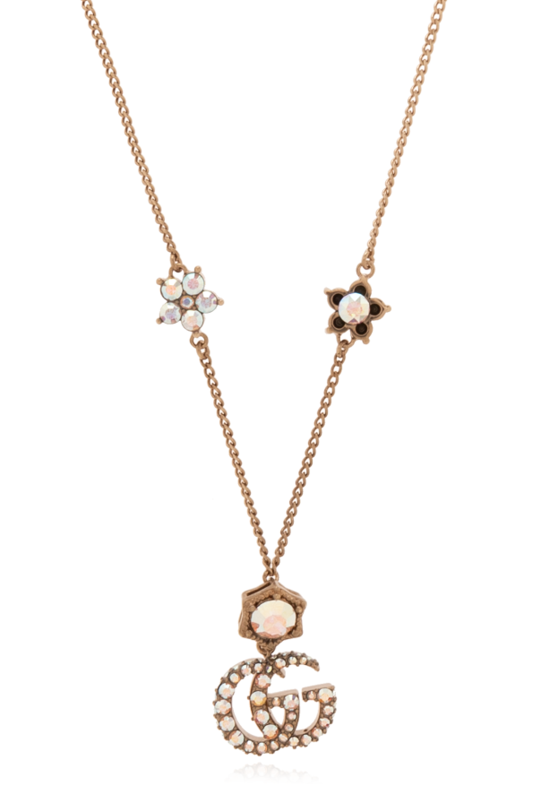 Gucci的古铜色黄铜项链,配有龙虾扣。饰有水晶和“Double G”标志吊坠。