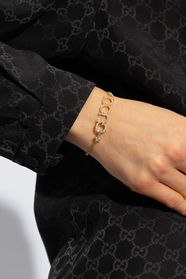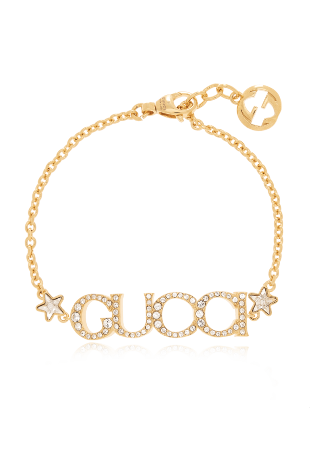 Gold-tone bracelet from Gucci. Made of brass, this item adjusts via a lobster clasp and showcases the brand's logo, a star detail and crystal embellishments.