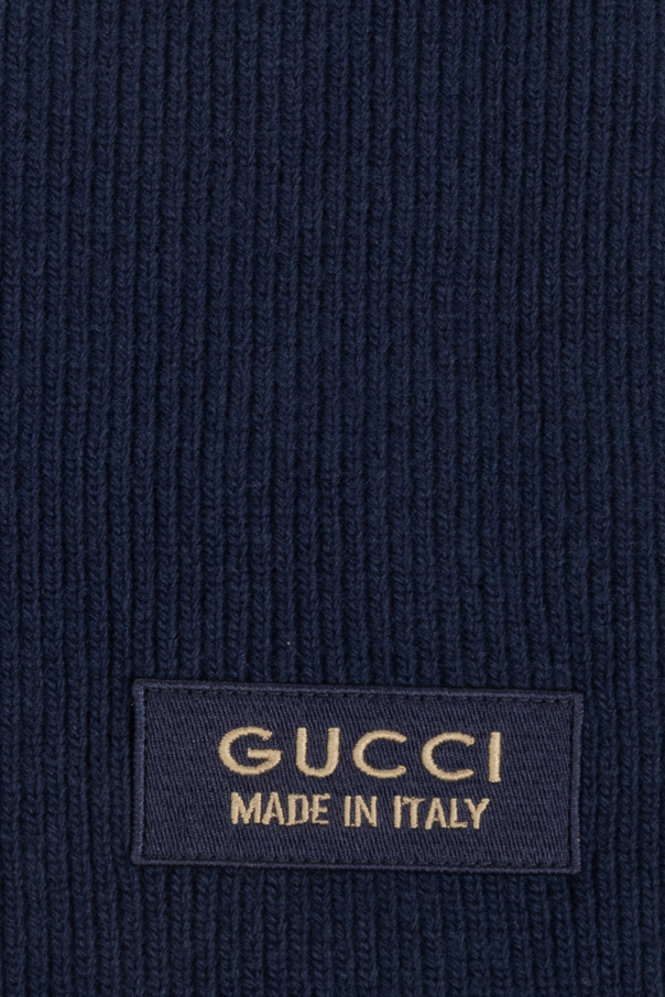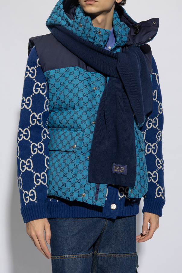 Gucci的深蓝色条纹围巾,由羊毛制成。饰有标志贴花。