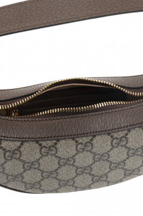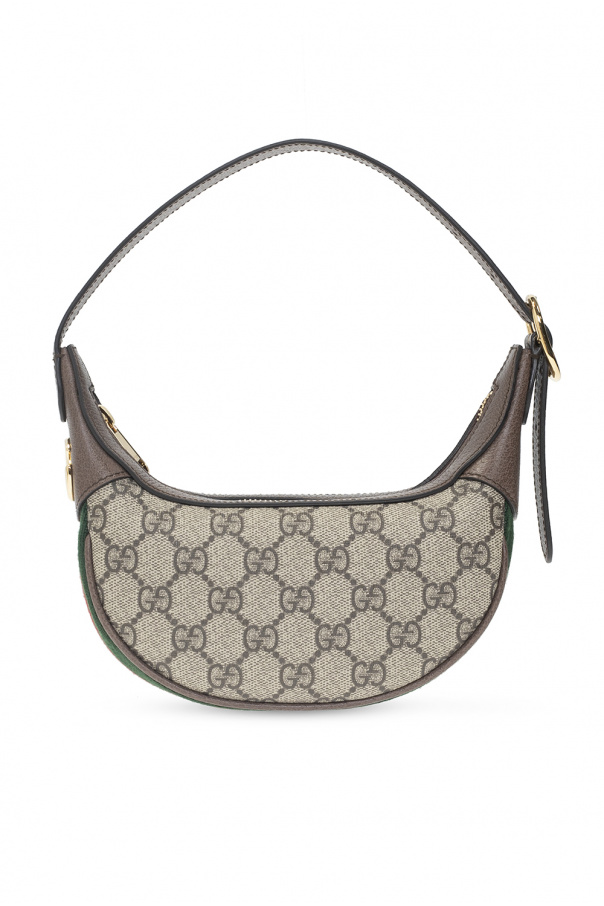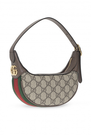 Gucci的棕色及米色Ophidia GG单肩包。迷你款式。GG Supreme帆布及皮革质。饰有拉链。附绿色及红色调Web条纹样式。侧面附logo配件。金色调金属配件。内部附一个隔层,两个卡槽,及一个饰链扣。