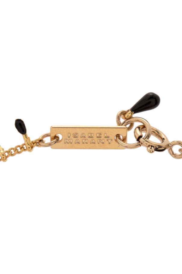 Isabel Marant金色手链。由黄铜制成。配有刻有品牌标志的卡拉比纽扣可调节。饰有黑色树脂饰坠。