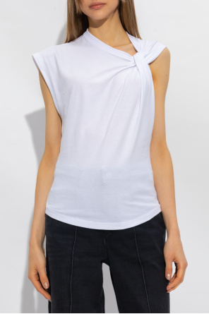 Isabel Marant的白色Nayda上衣。采用棉质面料制成。饰有装饰性编织细节。松紧圆领。