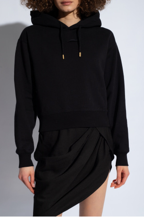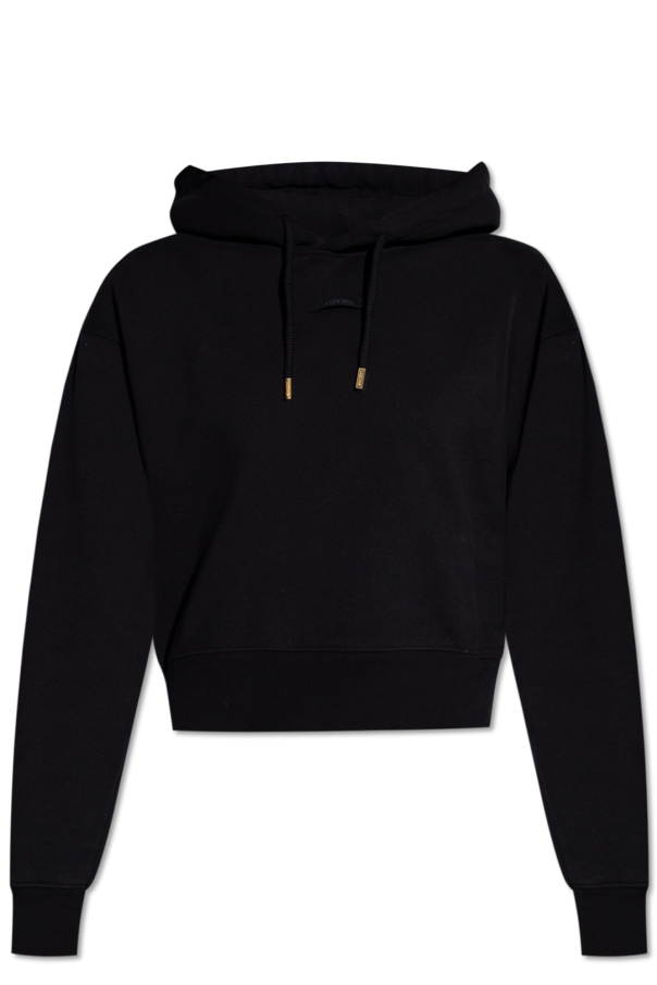 Jacquemus的黑色连帽衫。采用棉质面料制成。正面饰有标志贴花。抽绳兜帽。长袖和下摆设有松紧饰边。