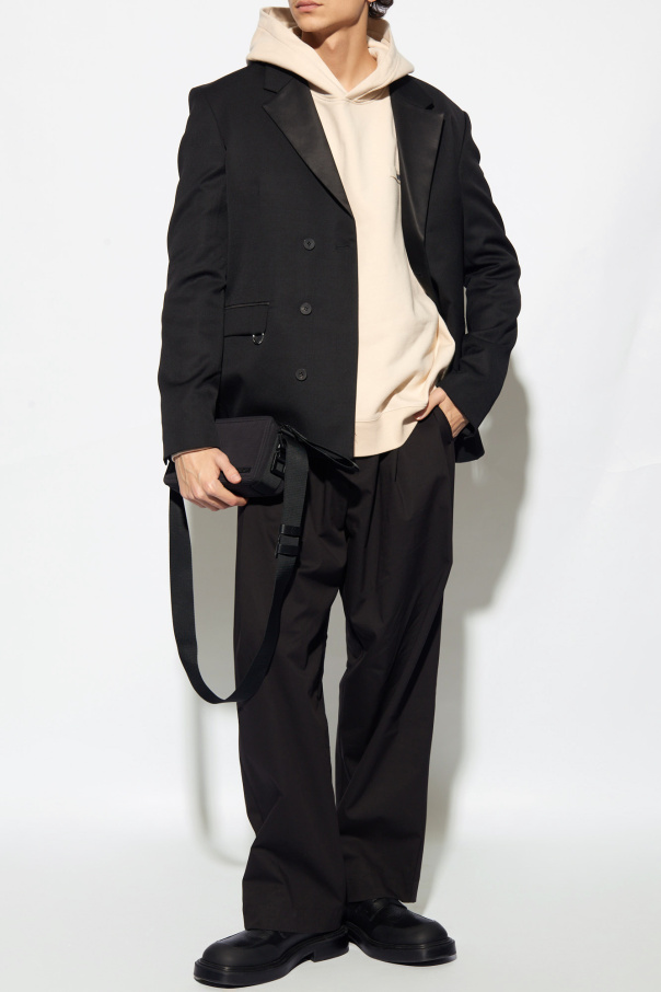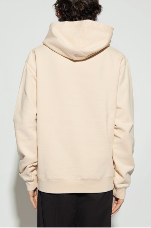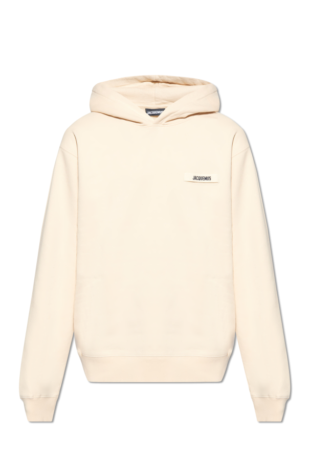 Jacquemus的浅米色棉质连帽衫。正面饰有标志贴花。长袖和下摆设有松紧饰边。