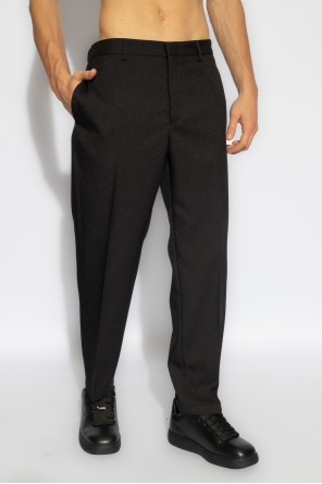 JIL SANDER的黑色前折裤。采用材质制成。拉链和钩扣开合。四个插袋。锥形裤腿。