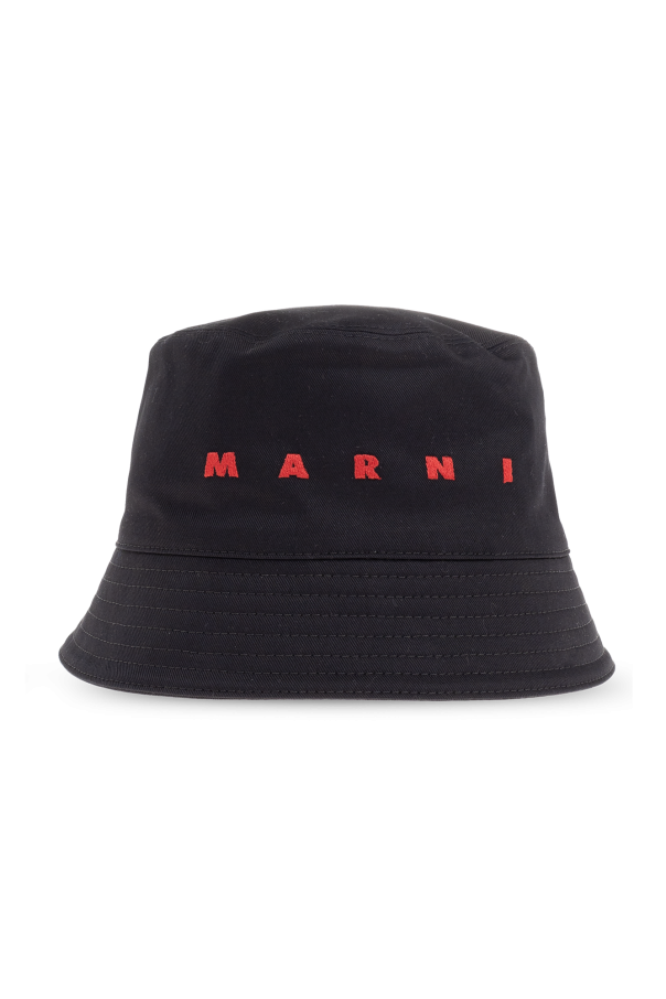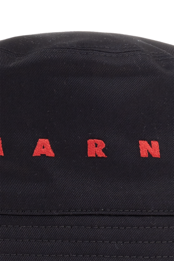 Marni的黑色渔夫帽。采用棉质面料制成。前面饰有红色线迹标志。