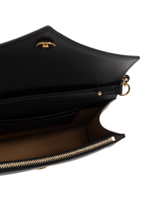 Black shoulder bag from MCM. Made of calf leather, this item secures via a magnetic snap and is embellished with an embossed logo. It is complete with a shoulder strap, gold-tone metal hardware, one back slip pocket, gold-tone metal hardware and one internal compartment with two card slots and one zip pocket.
