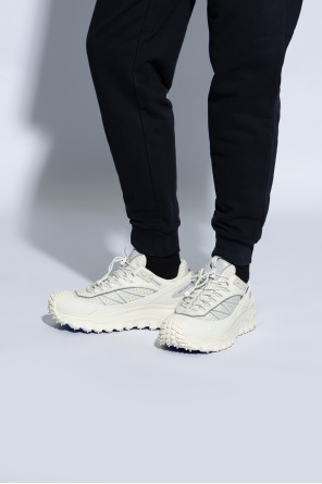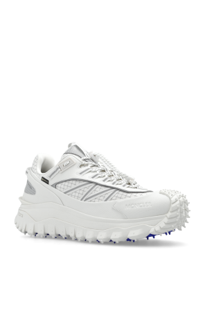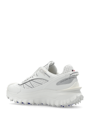 Moncler的白色Trailgrip GTX运动鞋,系带设计。采用防刮材质,配备GORE-TEX防水膜。饰有反光细节和标志。中底采用EVA泡沫提供弹性和轻盈感。中底和外底之间采用碳纤维。白蓝色Vibram®外底提供更好的抓地力和防滑性。OrthoLite®鞋垫提供透气性和持久的缓震效果。