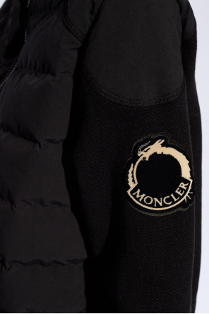 Black cardigan from Moncler, the ‘Year of the Dragon’ capsule collection. Crafted partially from cotton, this style fastens via a two-way zip and features a quilted down front panel, two zip pockets and long sleeves – one has a patch with a logo and dragon motif.