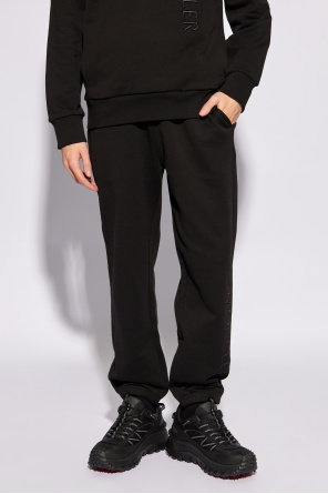 Black sweatpants from Moncler. Made of cotton, this pair is embellished with an embroidered logo and features a drawstring waistband, three slip pockets and ribbed cuffs.