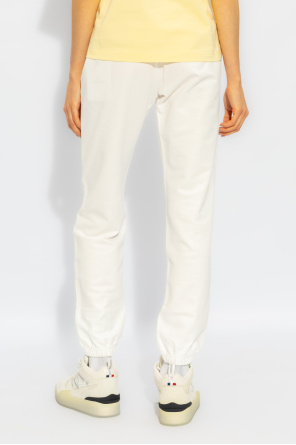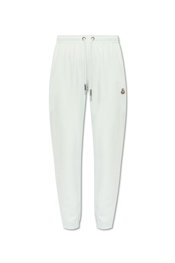 White sweatpants from Moncler. Made from cotton, this pair is embellished with a logo patch and features a drawstring waistband, two slip pockets and elasticated cuffs.
