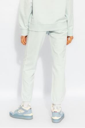 Moncler的浅蓝色棉质运动裤。抽绳松紧腰头。饰有标志贴花。两个插袋。松紧裤脚。