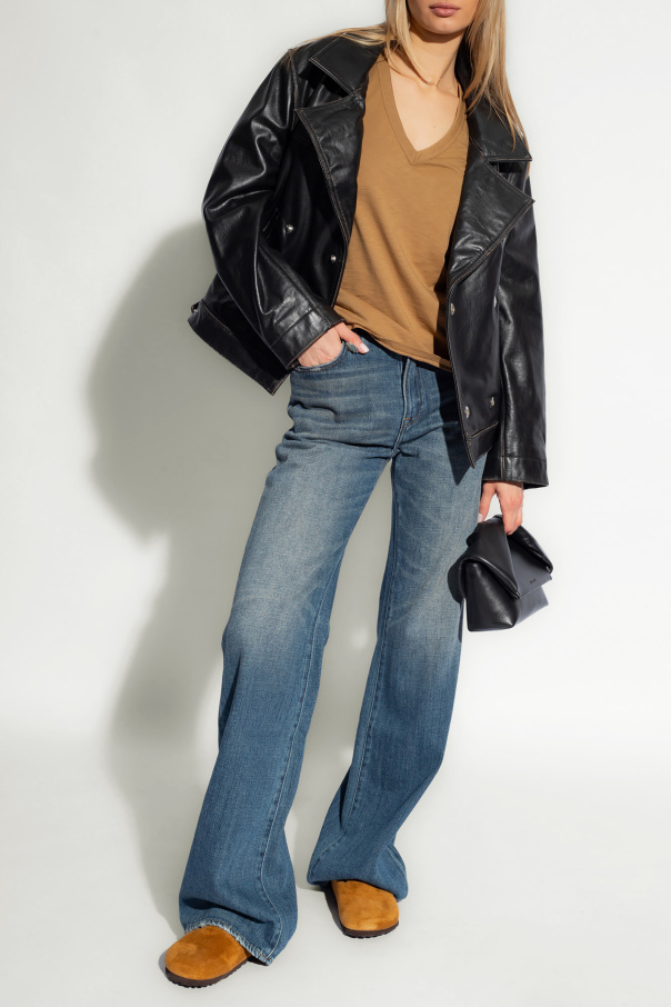 Rag & Bone的棕色V领T恤。采用有机棉制成。饰有标志贴花。短袖。