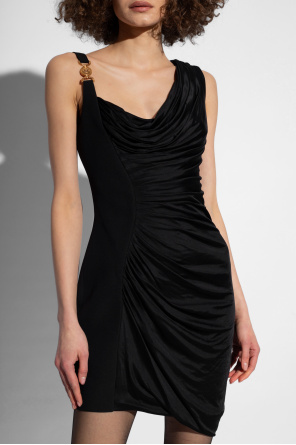 Black draped dress with a side zip from Versace.