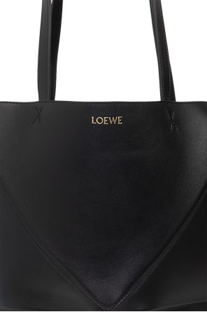 Black ‘Puzzle’ folding shopper bag from Loewe. Made of calf leather, this item features a gold-tone logo print, two handles and one internal compartment.